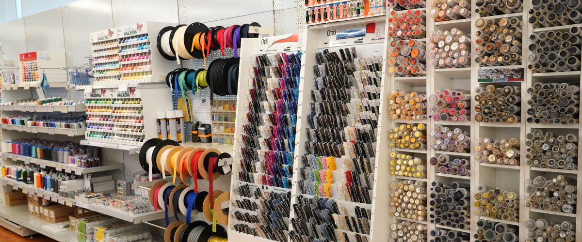 Erlebe auf über 300 m² Verkaufsfläche alles rund ums Nähen: Stoffe, Schnittmuster, Vliese, Garne und mehr. Lass dich von Musterstücken inspirieren und profitiere von persönlicher Beratung in kreativem Ambiente.